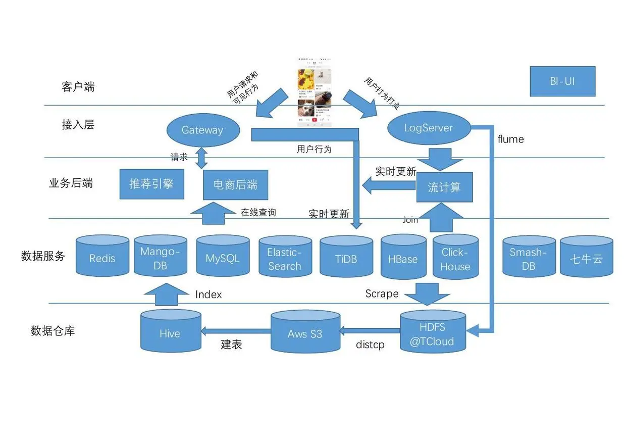 本次分享,郭一主要介绍了小红书社区的数据技术。首先介绍了小红书的产品和社区个性化的推荐需要的关键技术。然后对社区的数据技术分别从接入层,业务层,数据服务层和数据仓库层进行了概述。然后讲述了一个利用流计算引擎Flink给线上推荐提供用户行为实时的多维度聚合的业务实例。最后对小红书下一年的数据架构发展进行的展望。