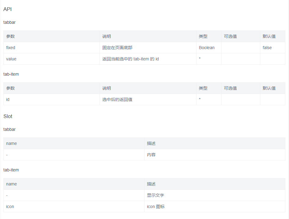 按照常规做法,我们现在这四个mt-tab-item 表现搞个router-link,路由跳转,但是,api好像似乎没有相关路由信息,像其他Vant ui中,tabbar是有路由的api参数的,可是mint-ui没有,api截图如下: