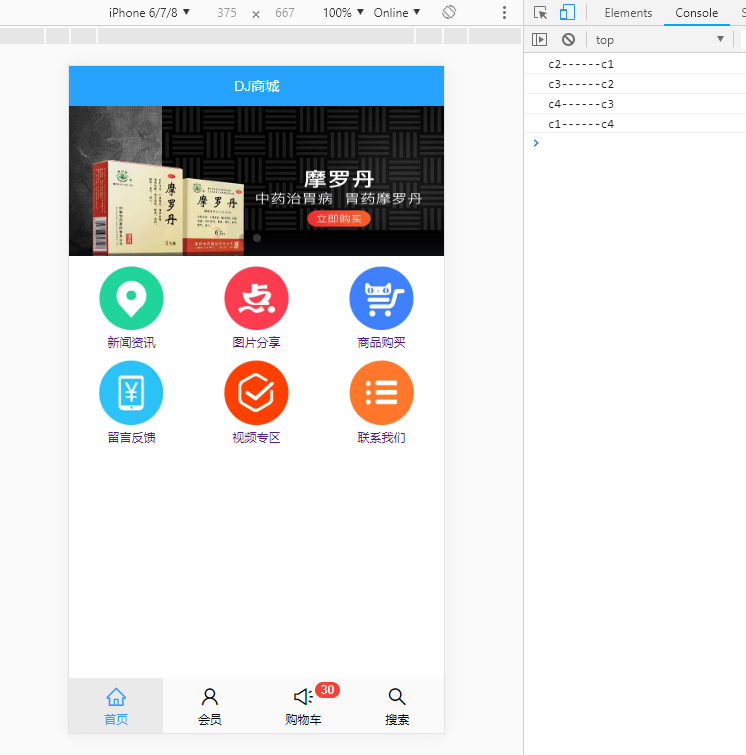 在watch中 方法可以有两个参数,用来记录新的值,和旧的值,那么我们拿到新值就可以路由匹配了,是不是很棒呢?效果图如下
