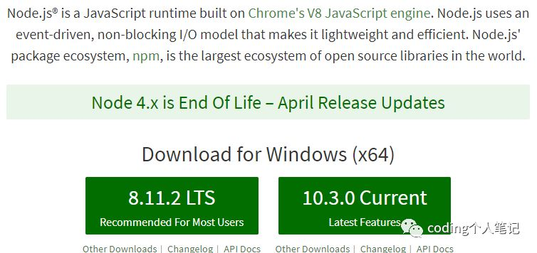 百度nodejs,官网第一条进去 nodejs.org/en/