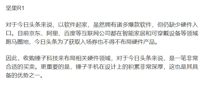 也有网友说,原因也很简单,今日头条看上了锤子科技的硬件和软件。