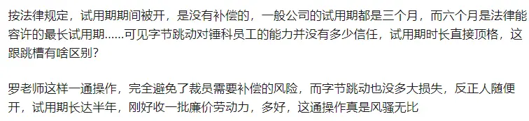 有好多员工确实在锤子科技呆了好几年,部分锤子科技员工抱怨道:如果以这种方式跳到字节跳动,还有6个月的试用期,这无疑是相当于自动离职,这跟跳槽有啥区别?如果是被被开除,拿到一笔补偿也是不错的。