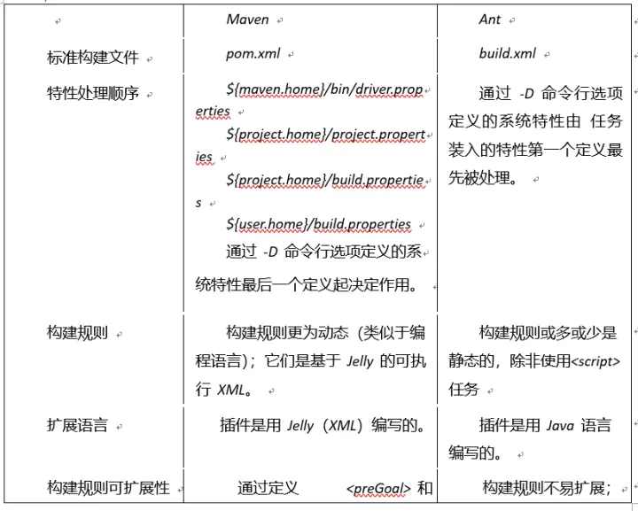 那么,Maven 和 Ant 有什么不同呢?在回答这个问题以前,首先要强调一点:Maven 和 Ant 针对构建问题的两个不同方面。Ant 为 Java 技术开发项目提供跨平台构建任务。Maven 本身描述项目的高级方面,它从 Ant 借用了绝大多数构建任务。因此,由于 Maven 和 Ant 代表两个差异很大的工具,所以接下来只说明这两个工具的等同组件之间的区别,如表所示。