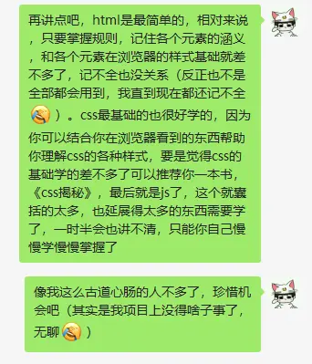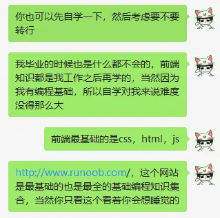 然后,我跟他说可以先自学一下前端的基础知识,再考虑要不要转行。