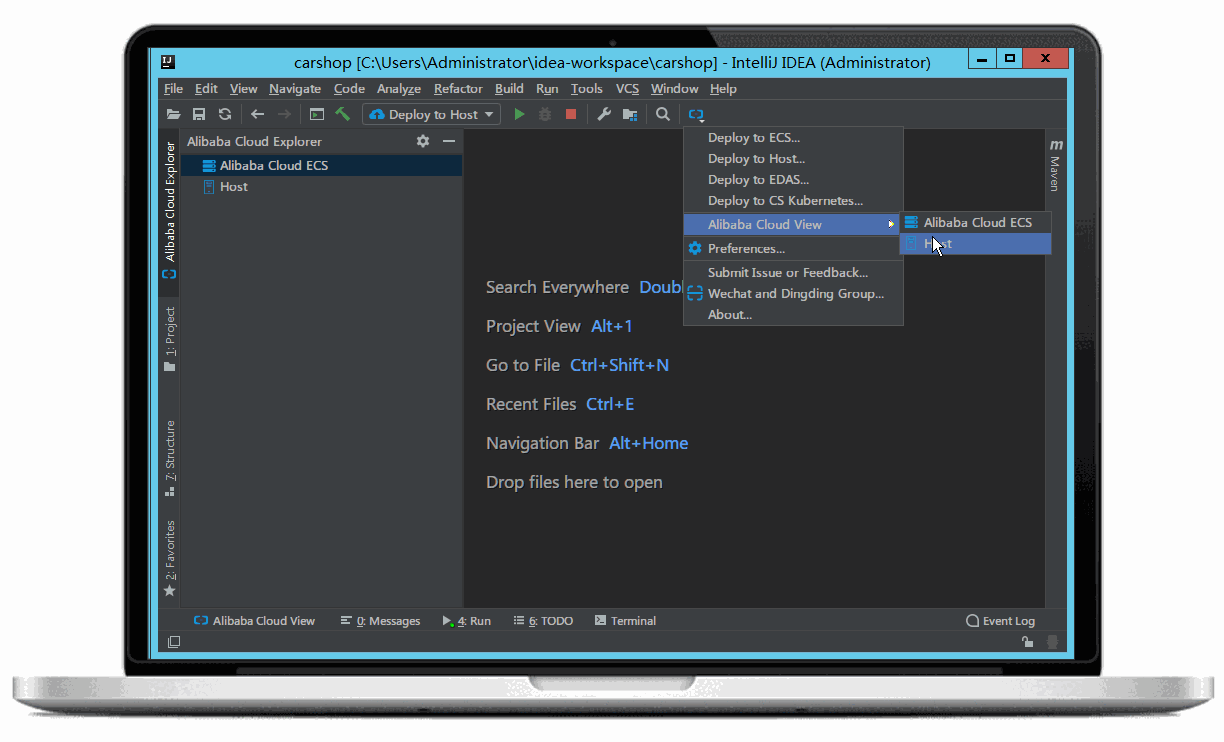 部署到 ECS 完成编码后,无需在一系列运维工具之间切换,只需在 Cloud Toolkit 的图形界面上选择目标 ECS 实例,即可将应用部署至 ECS 指定目录