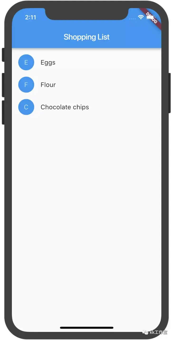 @override Widget build(BuildContext context) { return ListTile( onTap: () { onCartChanged(product, !inCart); }, leading: CircleAvatar( backgroundColor: _getColor(context), child: Text(product.name[0]), ), title: Text(product.name, style: _getTextStyle(context)), ); }}ShoppingListItemWidget遵循 StatelessWidget的通用模式。 它将它在构造函数中接收的值存储在最终成员变量中,然后在构建函数中使用它们。 例如, inCart bool值在两个视觉外观之间切换:一个使用当前主题的主要颜色,另一个使用灰色。