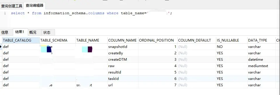 这个语句能查到每个字段的名字,还有一些相关信息还没查到,我就把改成column_name改成*看能查到字段什么相关信息。