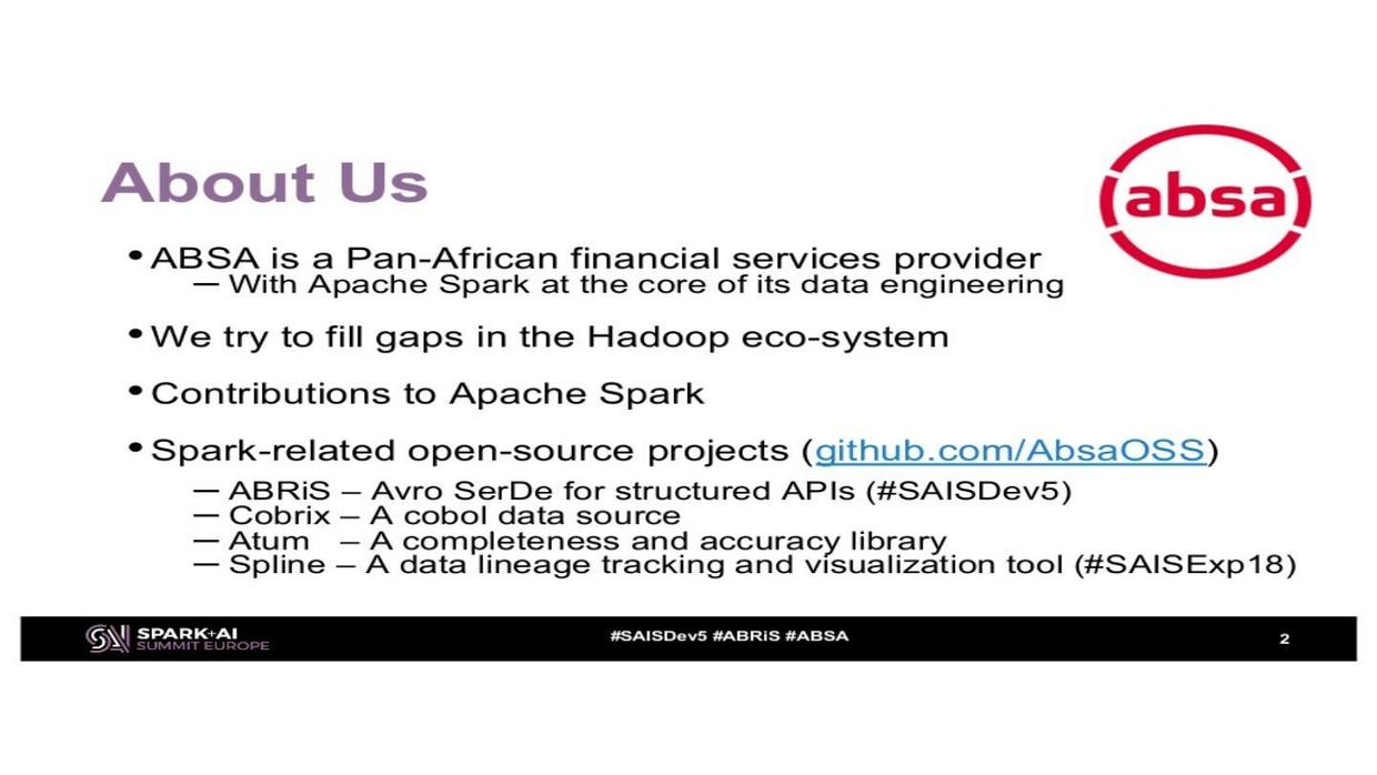ABRiS: Avro bridge for Apache Spark 示说网 2019-01-23 548 阅读1分钟 ABRiS是来非洲的金融服务供应商,他们利用Apache Spark作为核心的数据处理引擎,本篇会讲解他们在Spark以及Spark生态中的工作贡献。 原文&下载www.slidestalk.com/s/abris_avr…