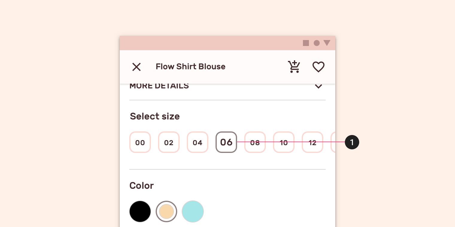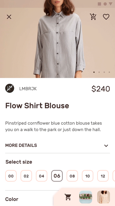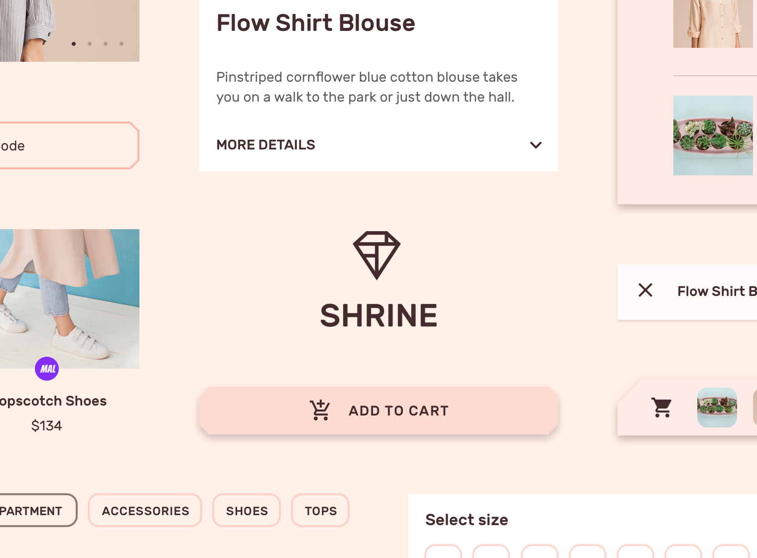 Shrine在产品详情页中使用了选择纸片。这些纸片保留了圆角,能与按钮区分开来。