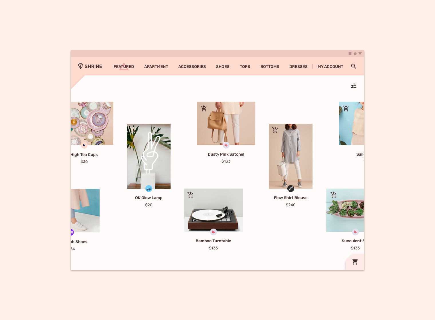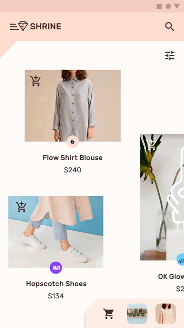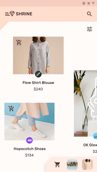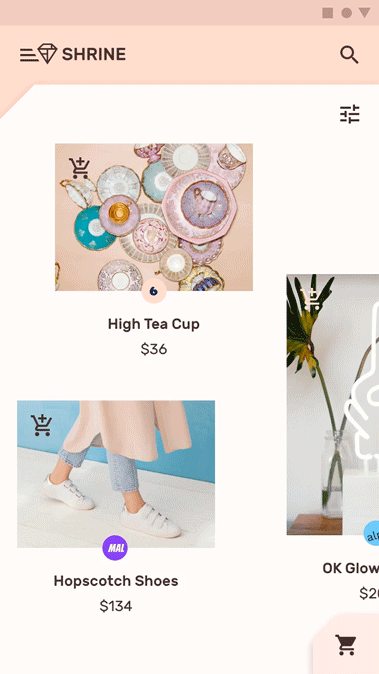 Shrine是一款零售APP,它使用Material Design组件和主题来表现各种时尚和生活方式商品的品牌。