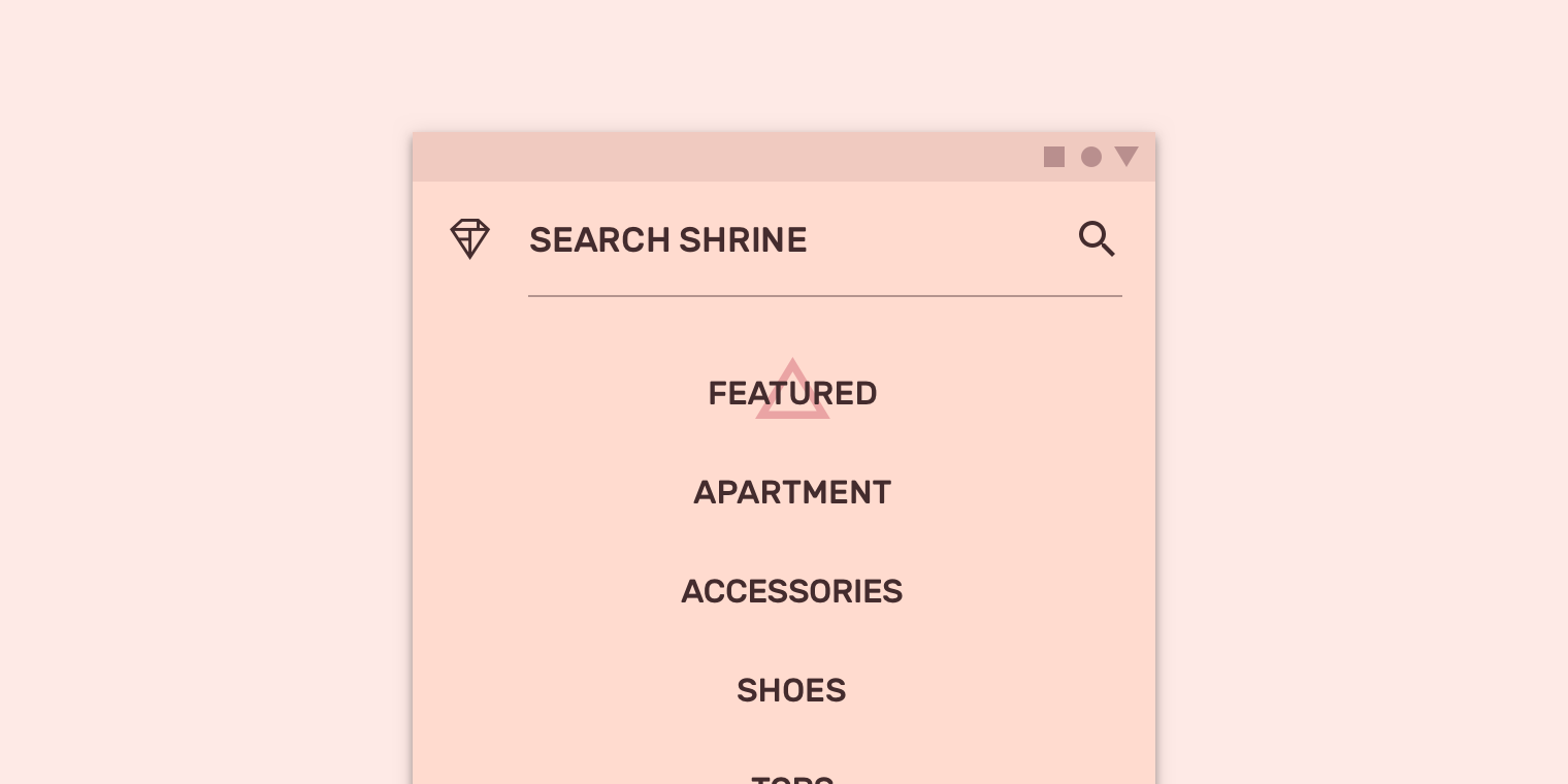 Shrine的信息架构中包含目录结构。目录中有分类信息,由可能包含从属项的同等顶级类组成。Shrine的顶级类将商品按类型(鞋、配饰、服装等)分组,因此能通过相互关系来查看。