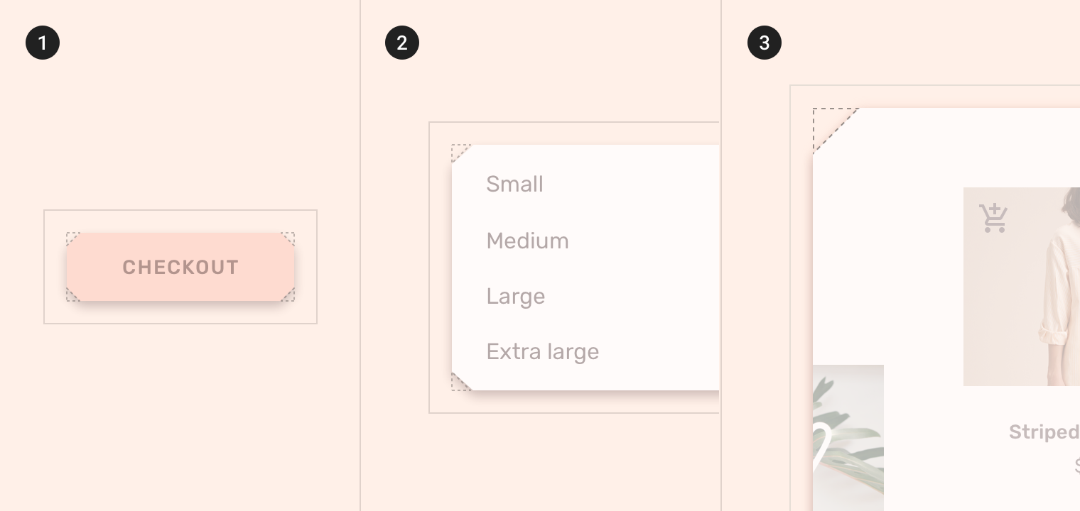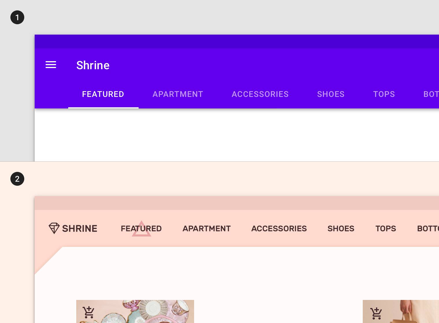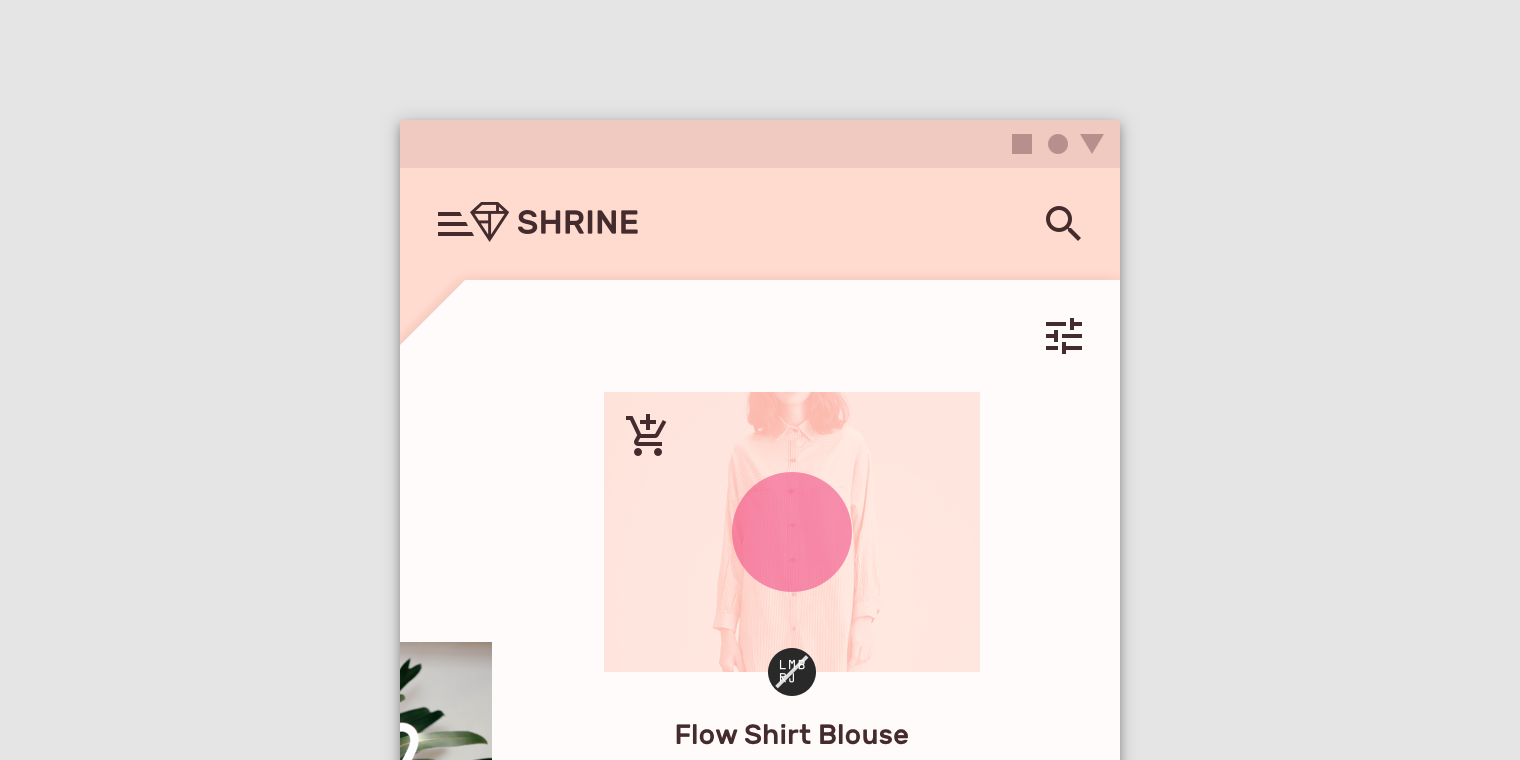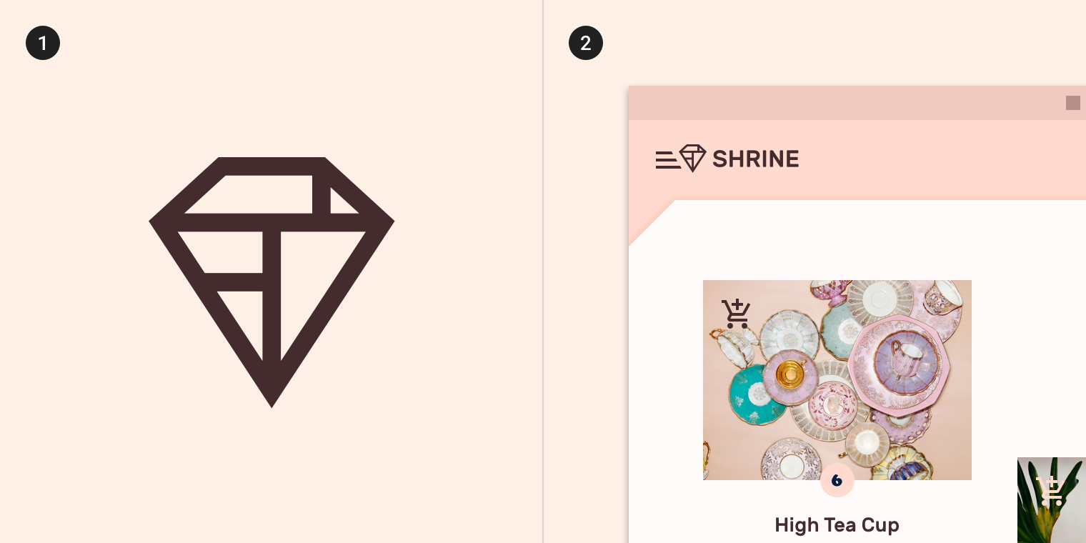 斜切角是Shrine的一个视觉主题,用于各种组件和元素。它们也表现在Shrine logo以及品牌延伸上。