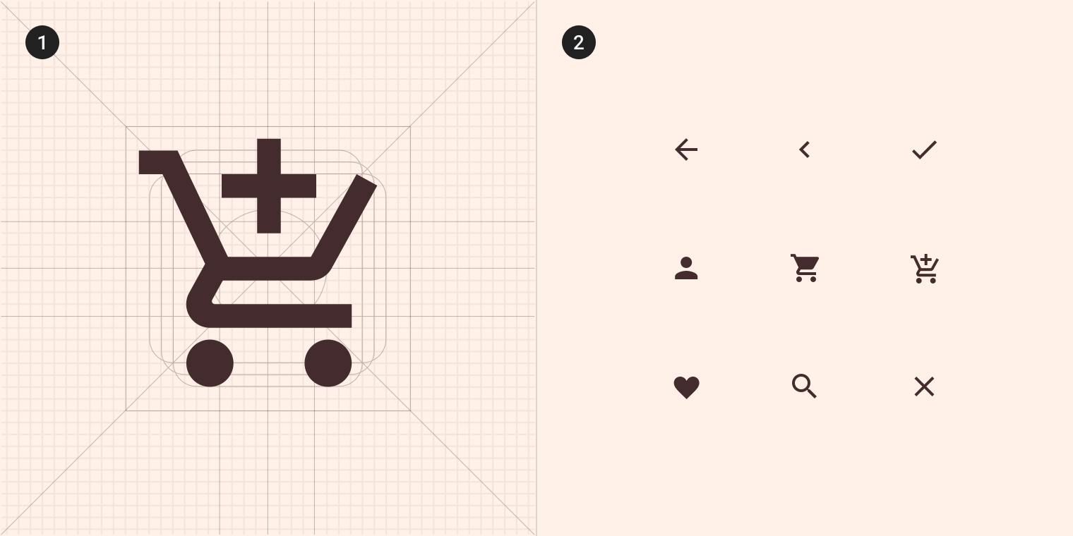 Shrine使用Material Design默认图标系统。这些图标结构在小尺寸显示时在也能保持清晰可读。