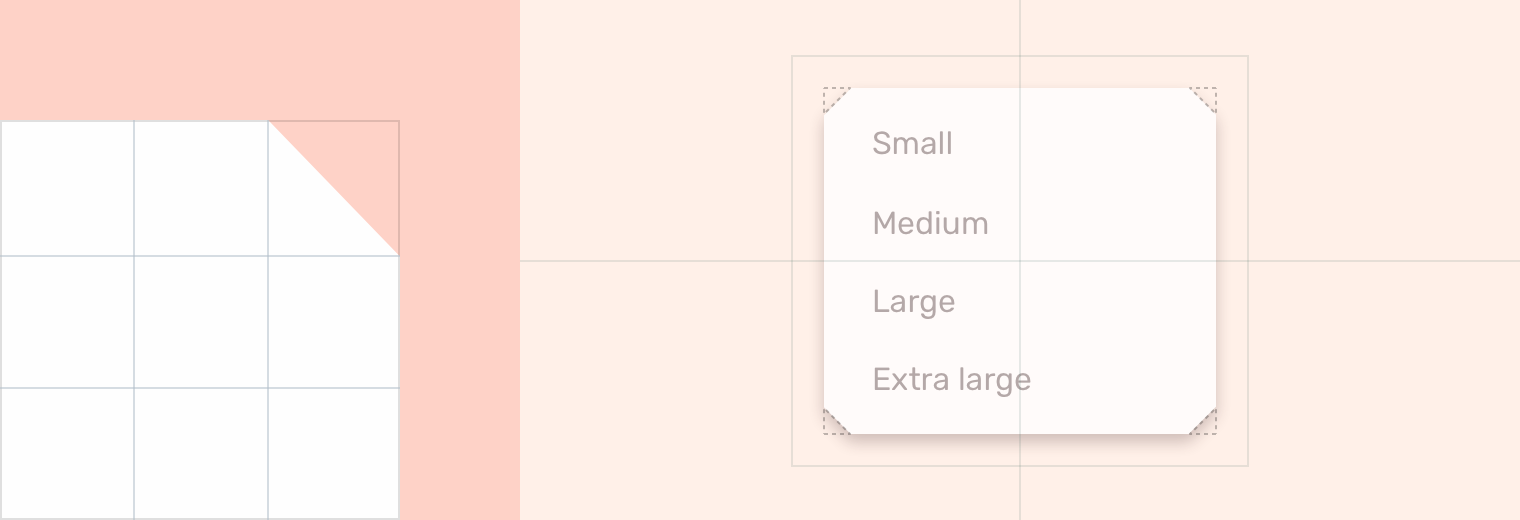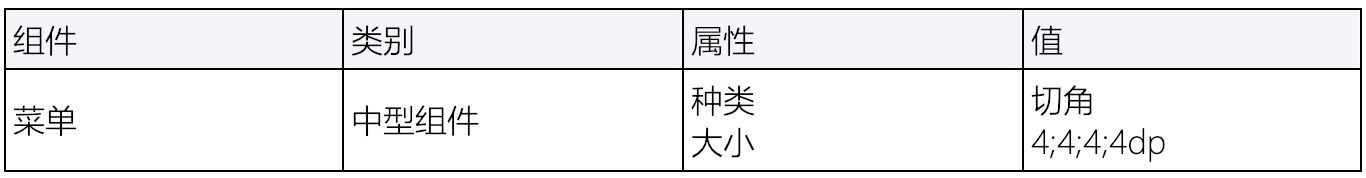 菜单属于中型形状类。它们的角为切角,长度为8dp。