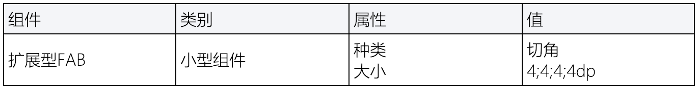 扩展型FABs(浮动操作按钮)属于小型形状类。它们的角为切角,长度为4dp。