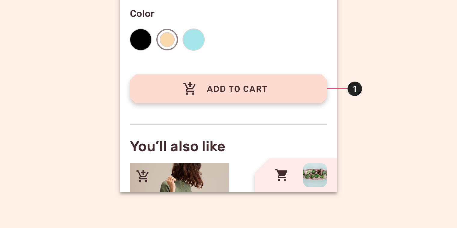 1. Shrine粉红100用于“ADD TO CART(添加到购物车)”按钮填充,确保其突出可见。
