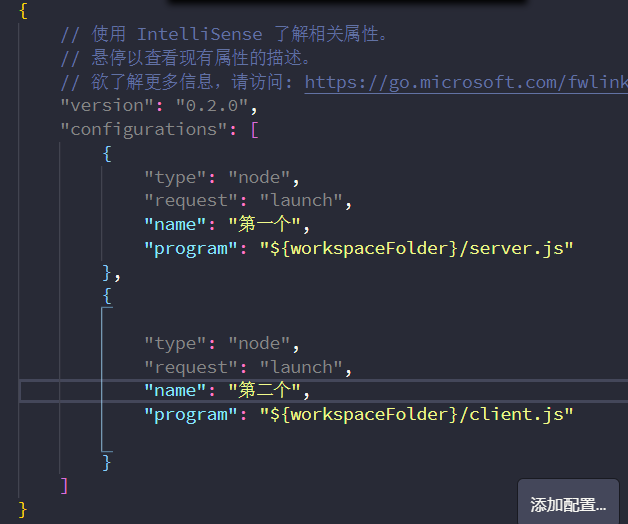 vscode 调试多个js文件 朝爱学习40066 2019-01-23 1,434 阅读1分钟 先创建两个js文件点击 选择添加配置 系统会在当前目录自动生成一个.vscode文件夹 里面是配置文件 launch.json 在configurations(配置)数组里 每一项就是你要调试的js的信息 像这样就可以啦