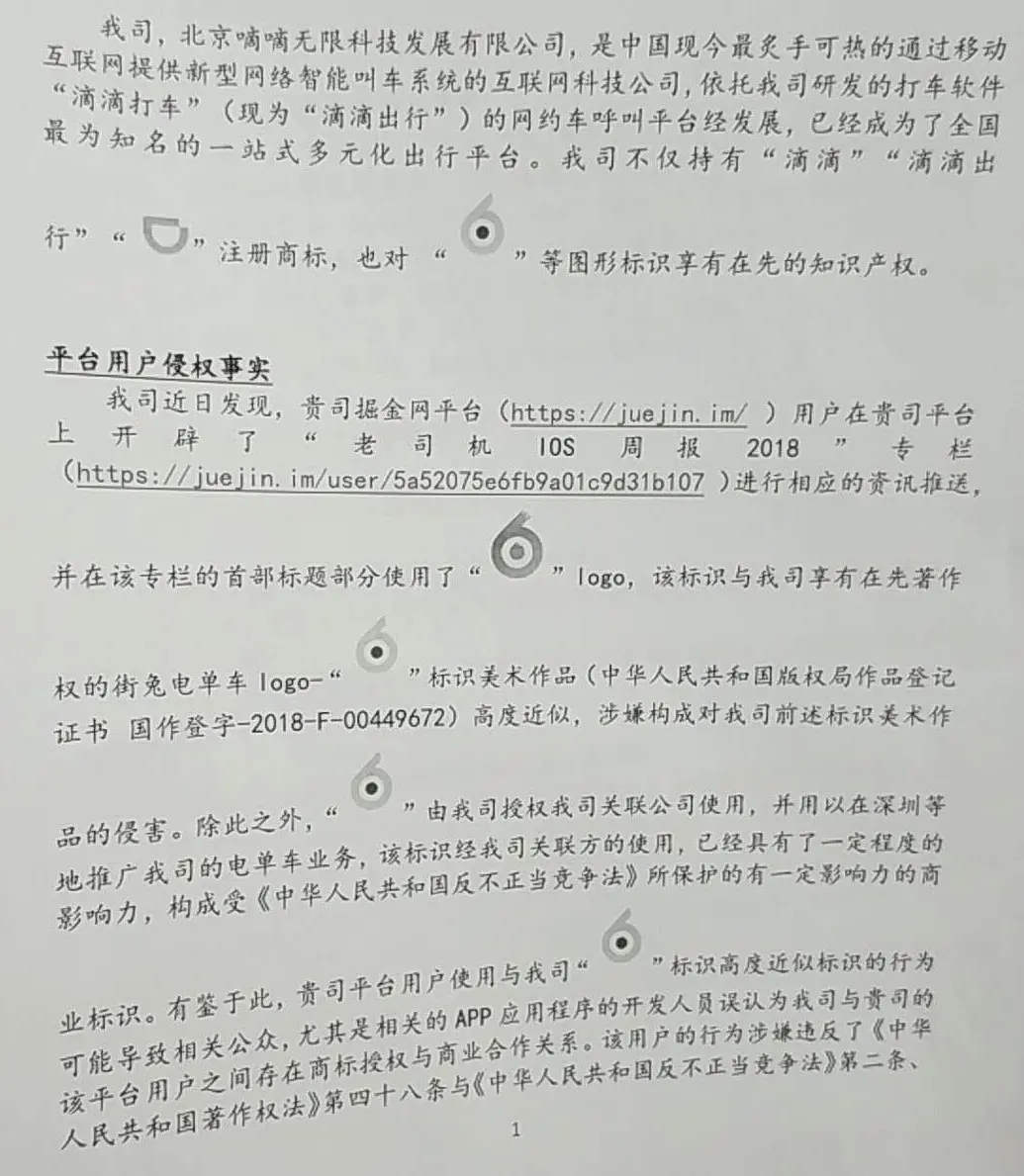 作为一个业余民间组织,我们在这里宣布已经收到了贵司的侵权通知书,并且我们会立即停止侵权。以下是滴滴发出的侵权通知书: