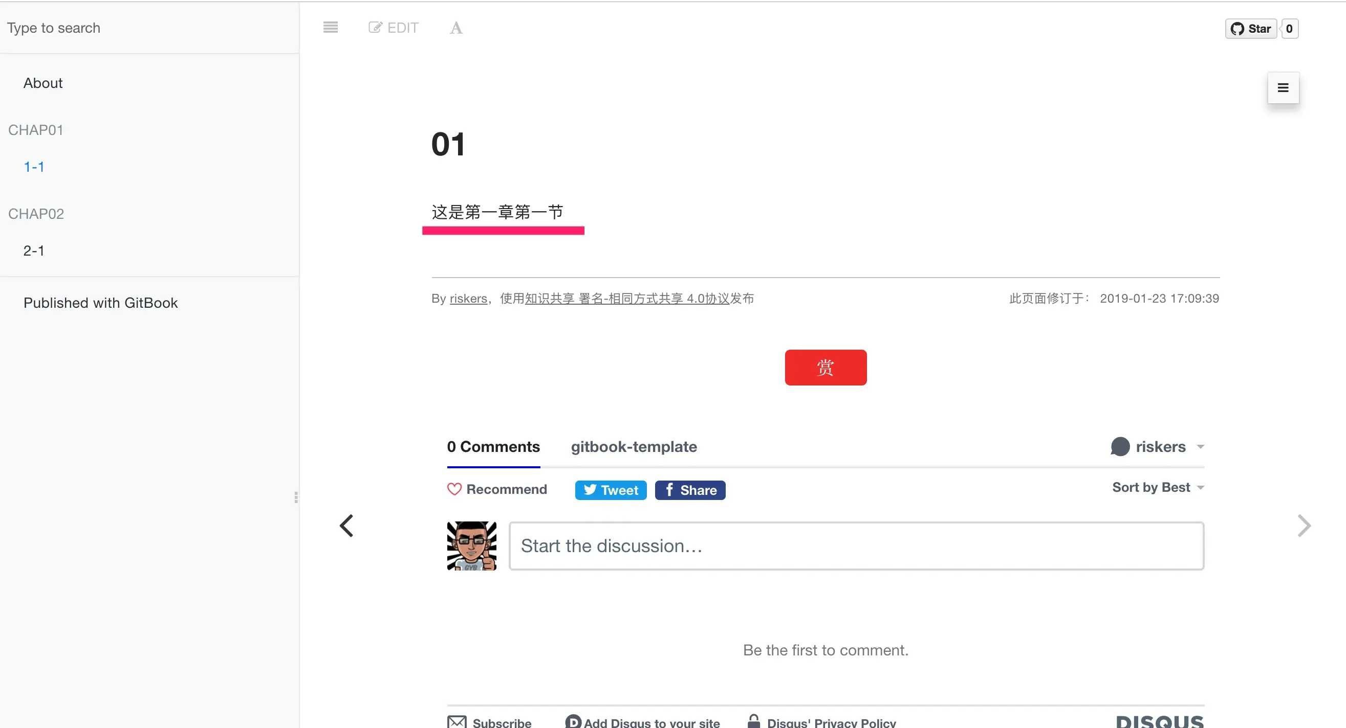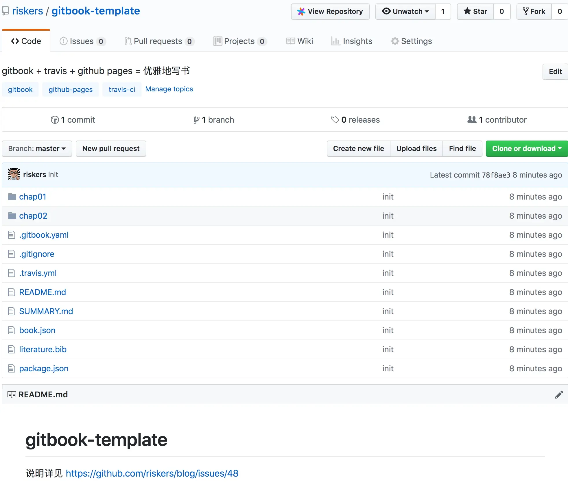 可以在 github pages riskers.github.io/gitbook-tem… 上看到效果: