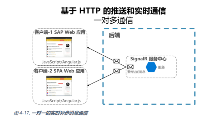 在订单微服务中,当订单状态变更时,需要实时推送订单状态变更消息给客户端。而这就涉及到实时通信。实时 HTTP 通信意味着,当数据可用时,服务端代码会推送内容到已连接的客户端,而不是服务端等待客户端来请求新数据。