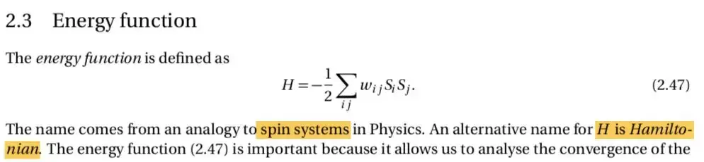 正如前面提到,这是一本物理学(统计物理)与机器学习的结合。虽然书的重点是机器学习,但落脚点仍然是物理。一方面,在其行文落笔之间充斥着不少物理学中的语言,例如这样: