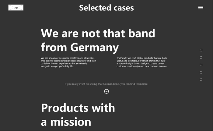 这是一个设计师团队,将数码产品的创意发挥到极致。整个网站采用深黑色背景和图文搭配,网站有很多动画特效,均突出数码产品的质感。网站结合滚动区实现导航栏悬浮效果,用弹出面板实现点击弹出内容等交互效果。