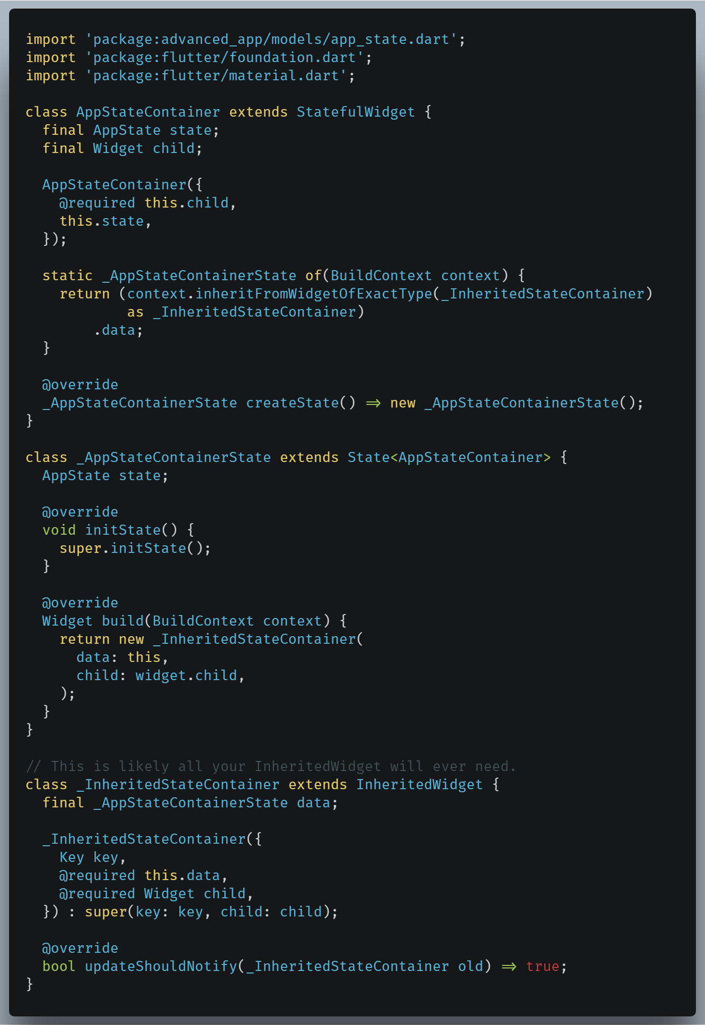 我必须阅读相当多的文章和示例来全面了解 InheritedWidget 在 Flutter 中的工作原理。这个概念本身对使用过 React 的我来说并不陌生,它只是不那么直接和有点冗长。我们来看一个我能找到的最简单的例子。