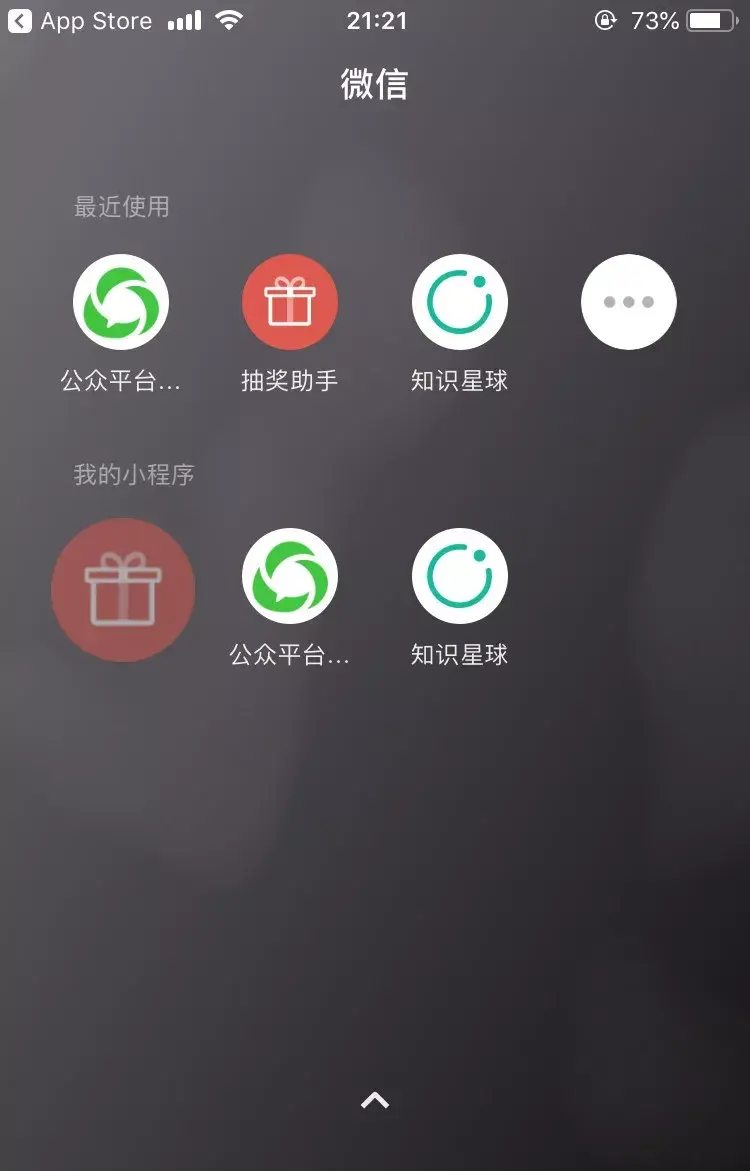 下拉首页后,它会占居整个首页屏幕,也被大家称为「小程序桌面」
