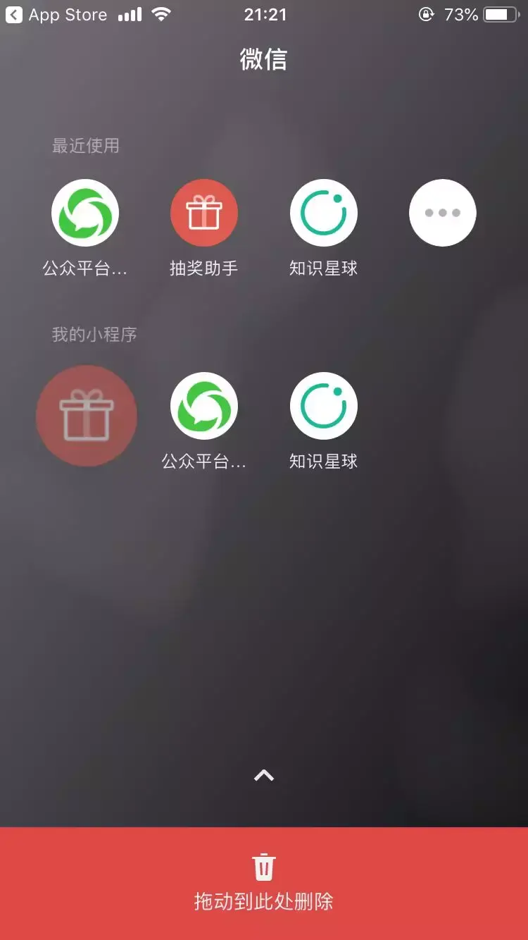同时,也可以将不再使用的小程序以同样的方法拖至底部删除区,实现删除操作,如下: