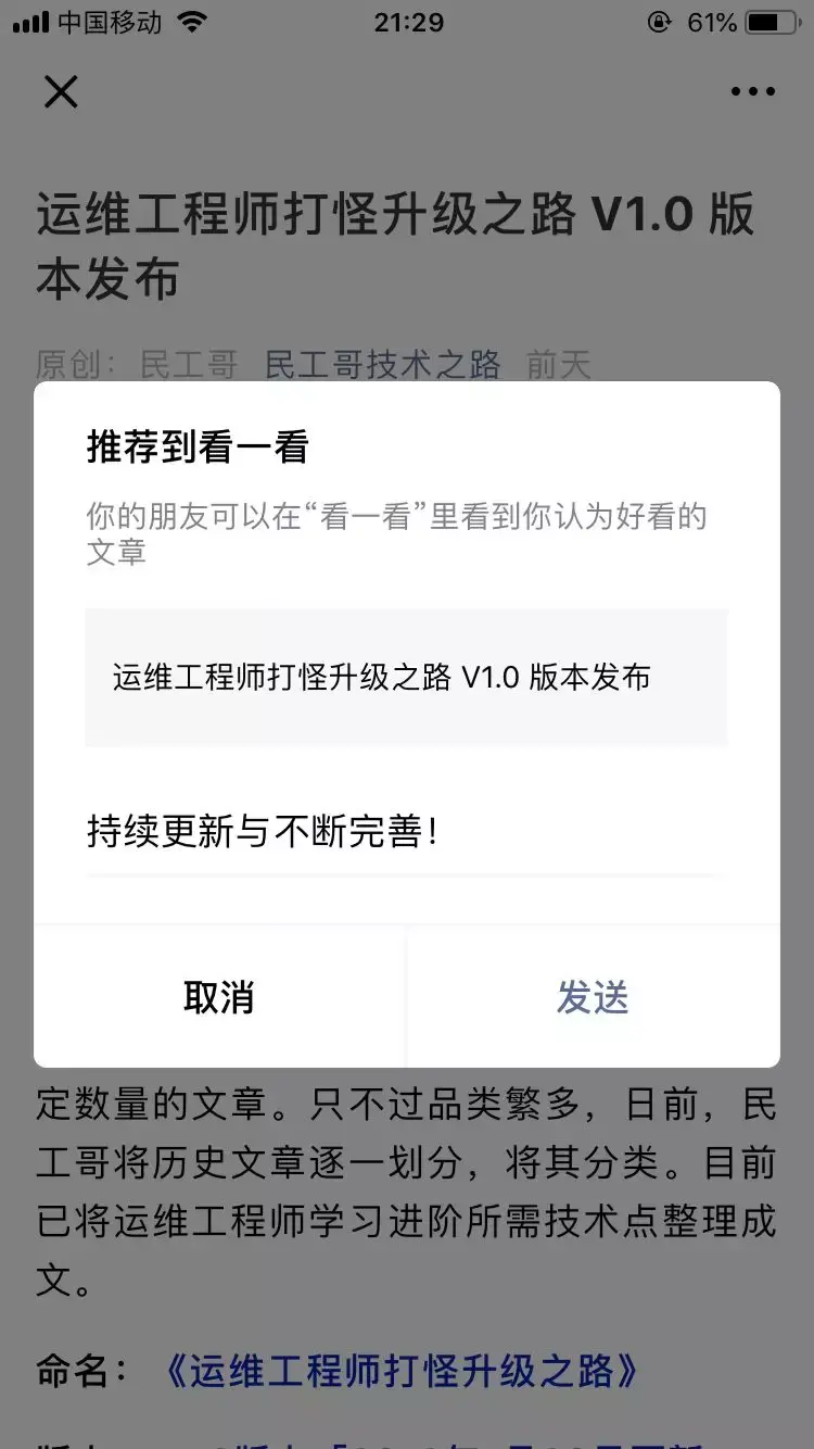 用点可以在输入完分享留言后,点击「发送」即可完成对文章点「好看」