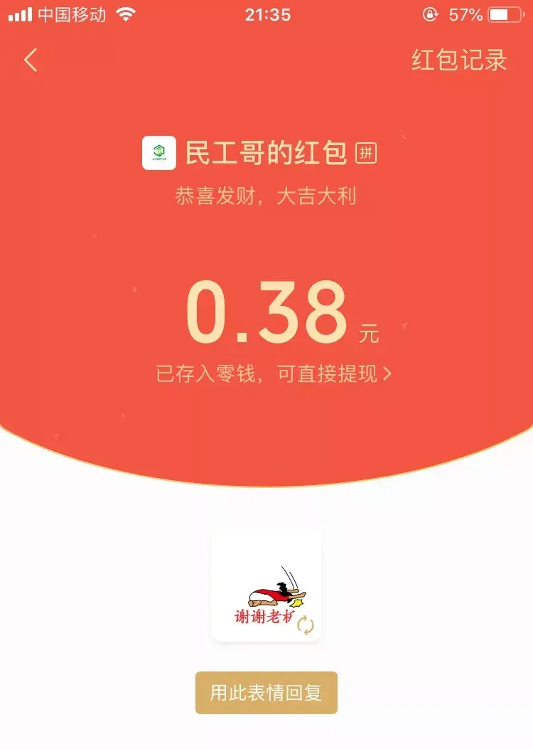 新增红包表情微信 7.0.3 版本增加了收红包之后快速回复表情的功能。