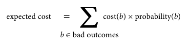 The cost of adopting a bad dependency can be viewed as the sum, over all possible bad outcomes, of the cost of each bad outcome multiplied by its probability of happening (risk).
