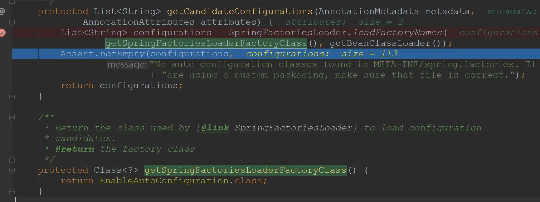 我们再进去看一下这些配置信息是从哪里来的(进去getCandidateConfigurations方法):