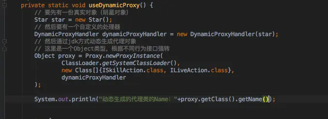 好了我们再回顾一下这个DynamicProxyHandler,加深每个元素之间的关联印象: