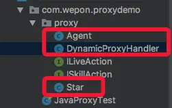 这里是我们的代理者,也就是明星经纪人,需要负责明星的各种行程规划和安排,那么用编程的思想来说的话,我们肯定是要持有这个"明星"的一份引用的,当然了,现在我们的明星还只会唱歌这一项技能(sing()),那么我们现在需要代理的也就只有sing()这一个行为方法了,这里是需要跟明星一样实现共同的接口的(ISkillAction):