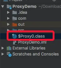 通过这里的代码和path,我们可以看到这里生成了一个$Proxy0.class的文件保存在这个path:com/sun/proxy/$Proxy0.class,那是不是这样呢?