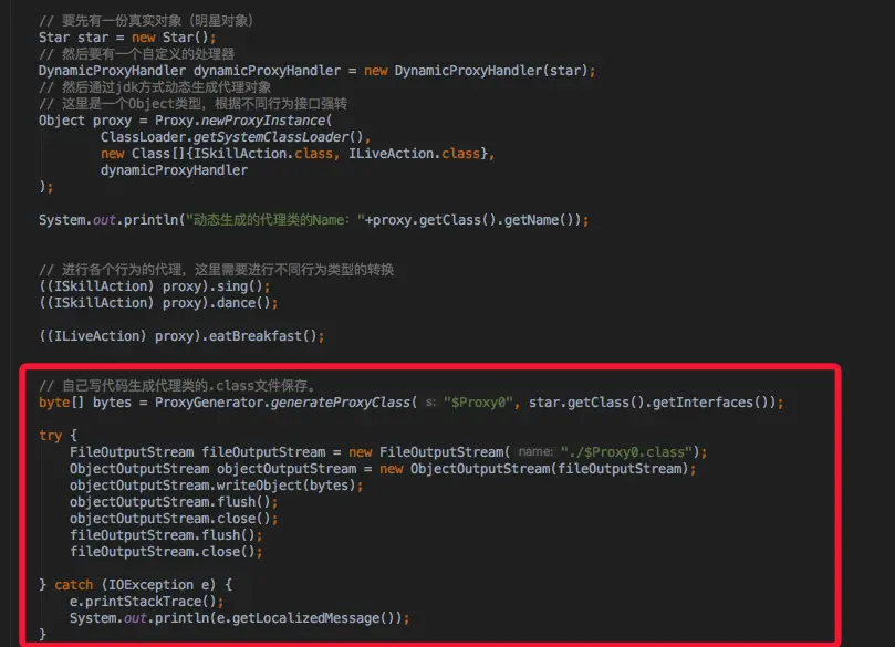 我们可以通过这个方法拿到代理类Class的byte[]后自己保存成.class文件,代码如下: