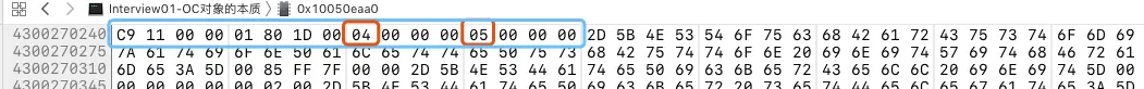 对于结构体来说,和数组一样。其第一个成员的地址,即为结构体对象的地址。 所以一个OC对象的地址,实际上就是其isa指针的地址。