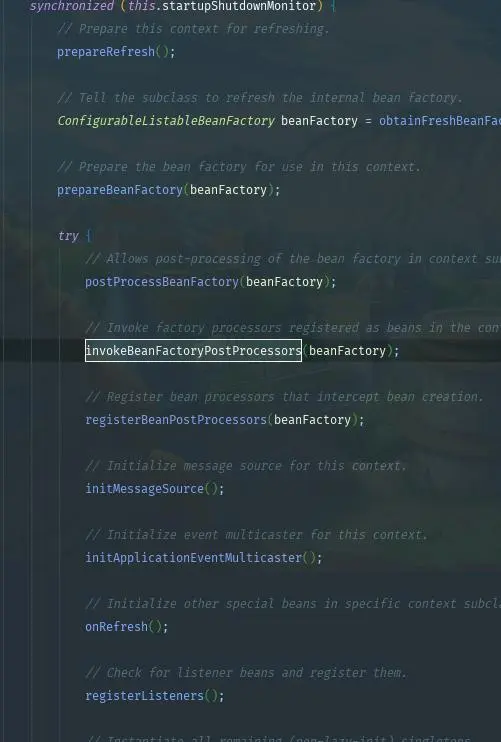 并且invokeBeanFactoryPostProcessors方法正是对invokeBeanFactoryPostProcessor实现类进行了激活,并对BeanDefinition进行了更改。