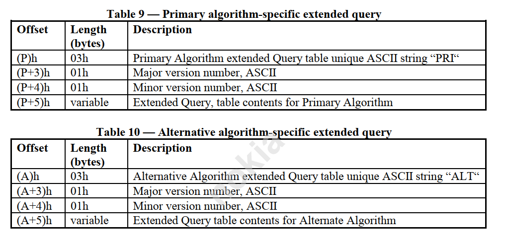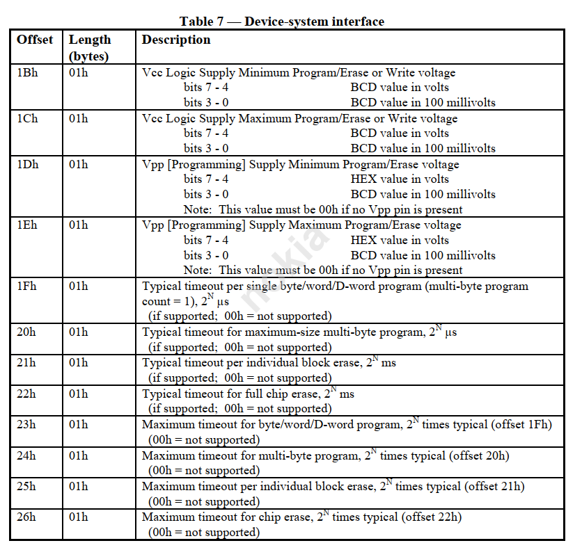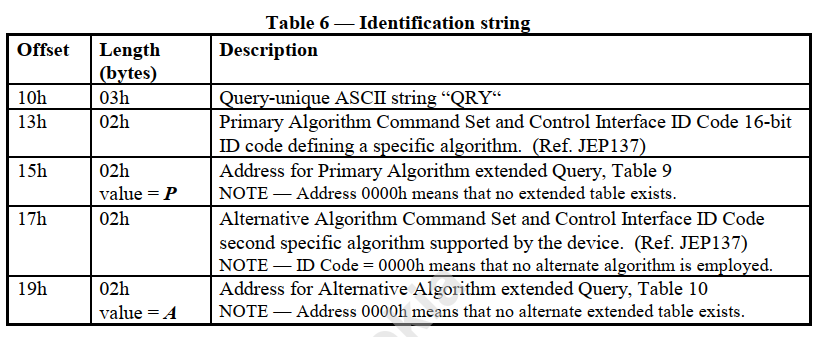 Common Flash Interface (CFI)规范定义NOR flash和CPU之间的接口,方便CPU查询NOR flash的重要信息。