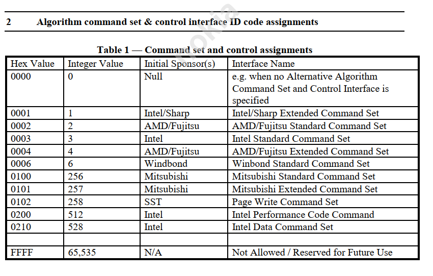- JEP137B: Common Flash Interface (CFI) ID Codes