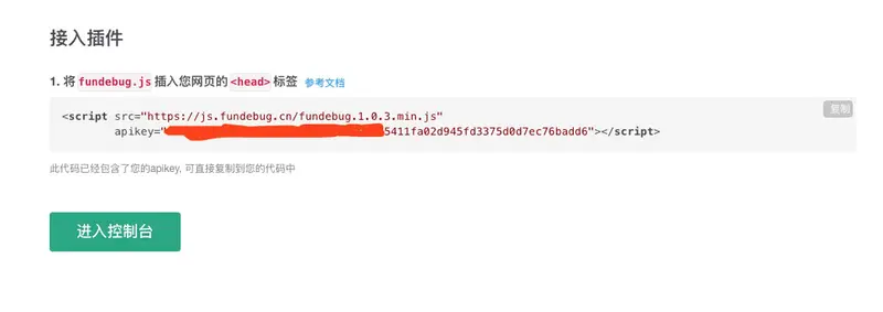 然后,在Fundebug创建一个JS监控项目,并拷贝接入代码:
