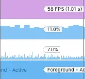 GICXMLLayout:GIC的GPU的占用上跟原生的差不多,但是CPU却一直有占用,差不多维持着最高10%的占用。并且可以注意到,CPU的占用不是连续的而是断断续续的,这是有原因的,因为GIC的动画是基于popAnimation实现的,而popAnimation是基于CADisplaylink开发的,并且是按照60帧计算的。也就是差不多每秒60次的动画计算。而只有在动画计算的时候才会占用CPU资源,因此从测试结果来看,也是符合预期的。另外,在内存占用方面,跟原生动画差不多。flutterflutter的动画在GPU的占用上几乎是原生的两倍以上。而且CPU也是连续维持着10%的占用。而内存占用方面也差不多是原生的两倍以上。