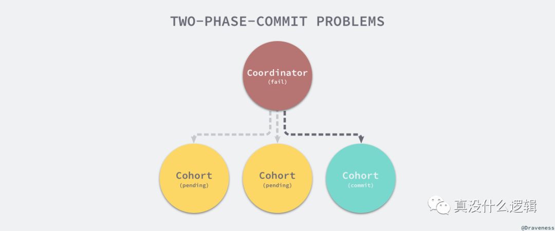 当事务的所有参与者都决定提交事务时,协调者会向参与者发送 COMMIT 请求,参与者在完成操作并释放资源之后向协调者返回完成消息,协调者在收到所有参与者的完成消息时会结束整个事务;与之相反,当有参与者决定 ABORT 当前事务时,协调者会向事务的参与者发送回滚请求,参与者会根据之前执行操作时的回滚日志对操作进行回滚并向协调者发送完成的消息,在提交阶段,无论当前事务被提交还是回滚,所有的资源都会被释放并且事务也一定会结束。