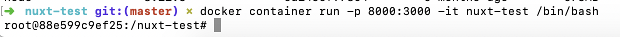 docker container run -p 8000:3000 -it nuxt-test /bin/bash