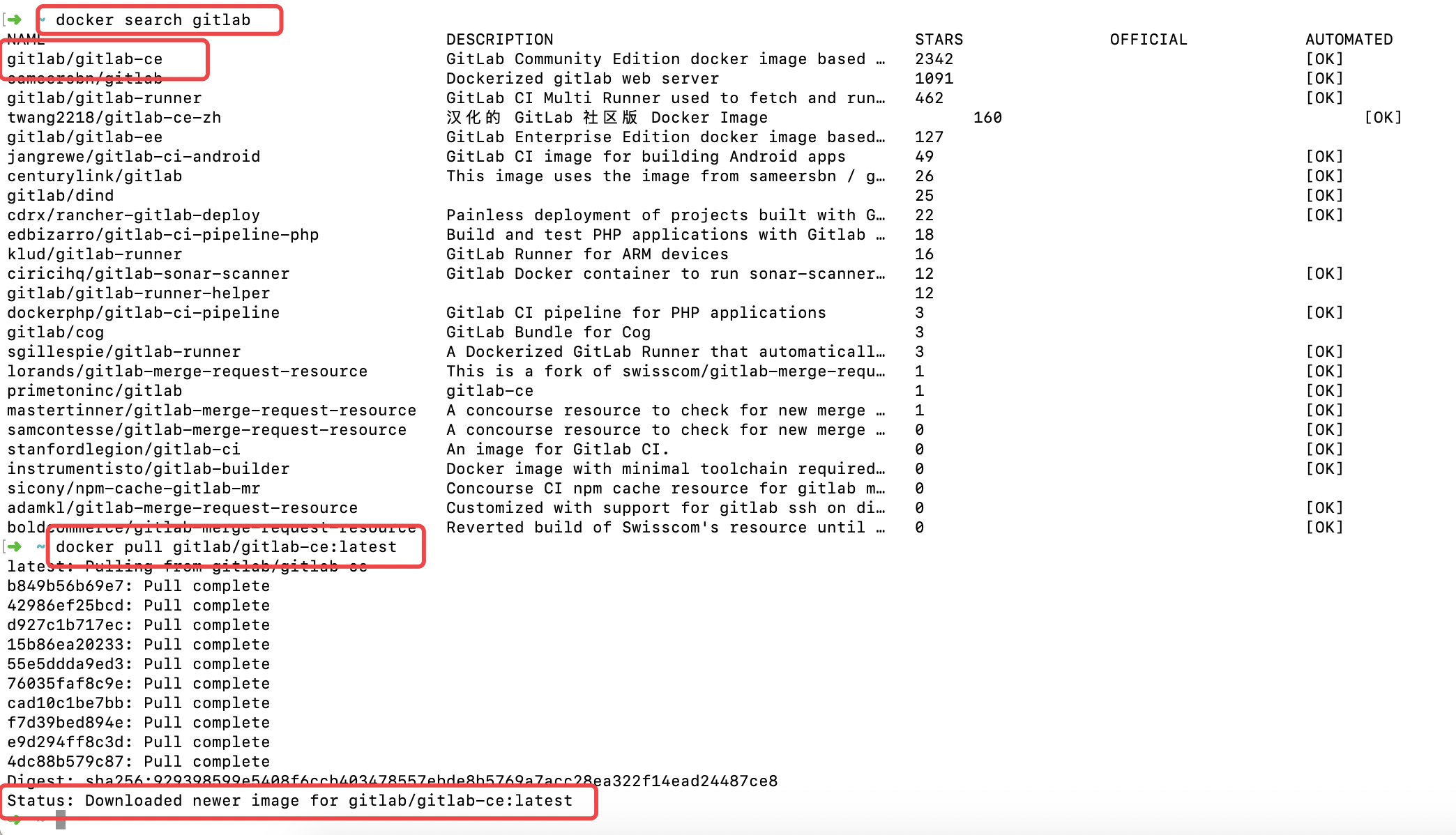 docker pull gitlab/gitlab-ce:latest