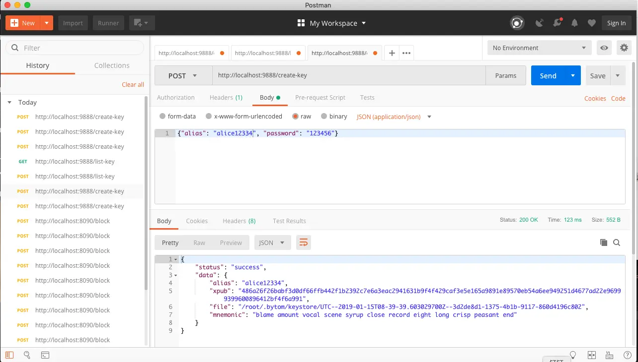 说明我们已经搭建好了比原节点,并且可以进行远程调用。下面我们用程序去调用比原节点: