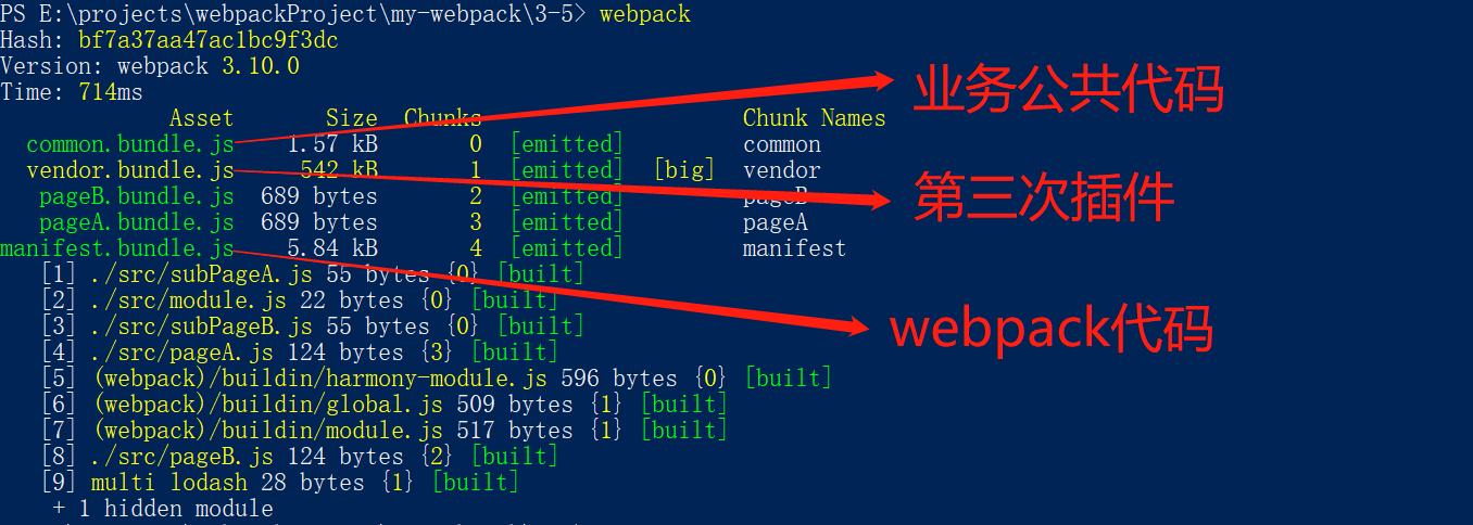 ④把业务公共代码、第三方插件和webpack各自提取出来