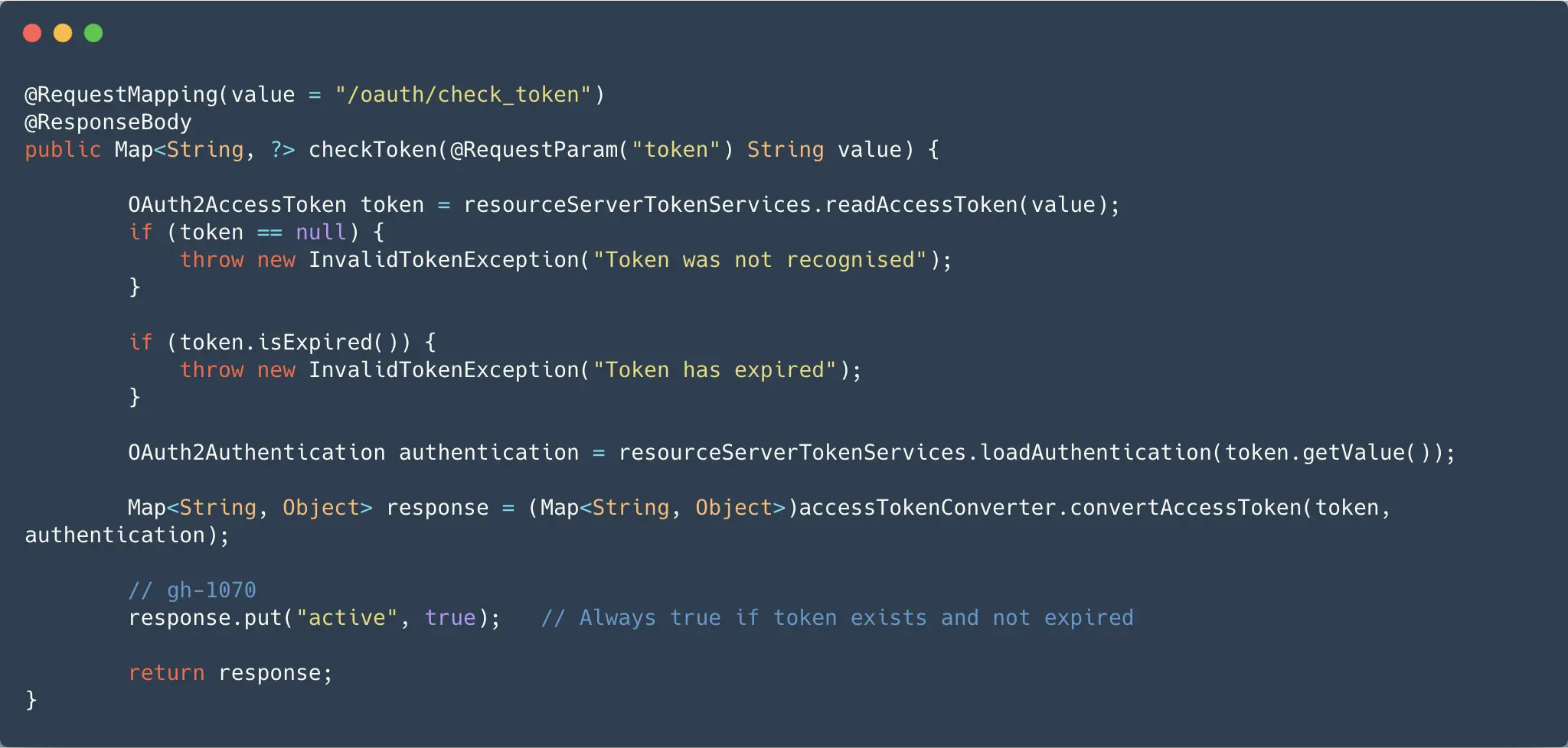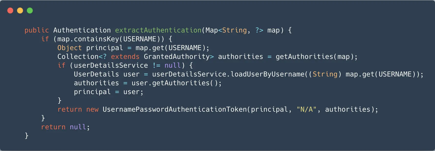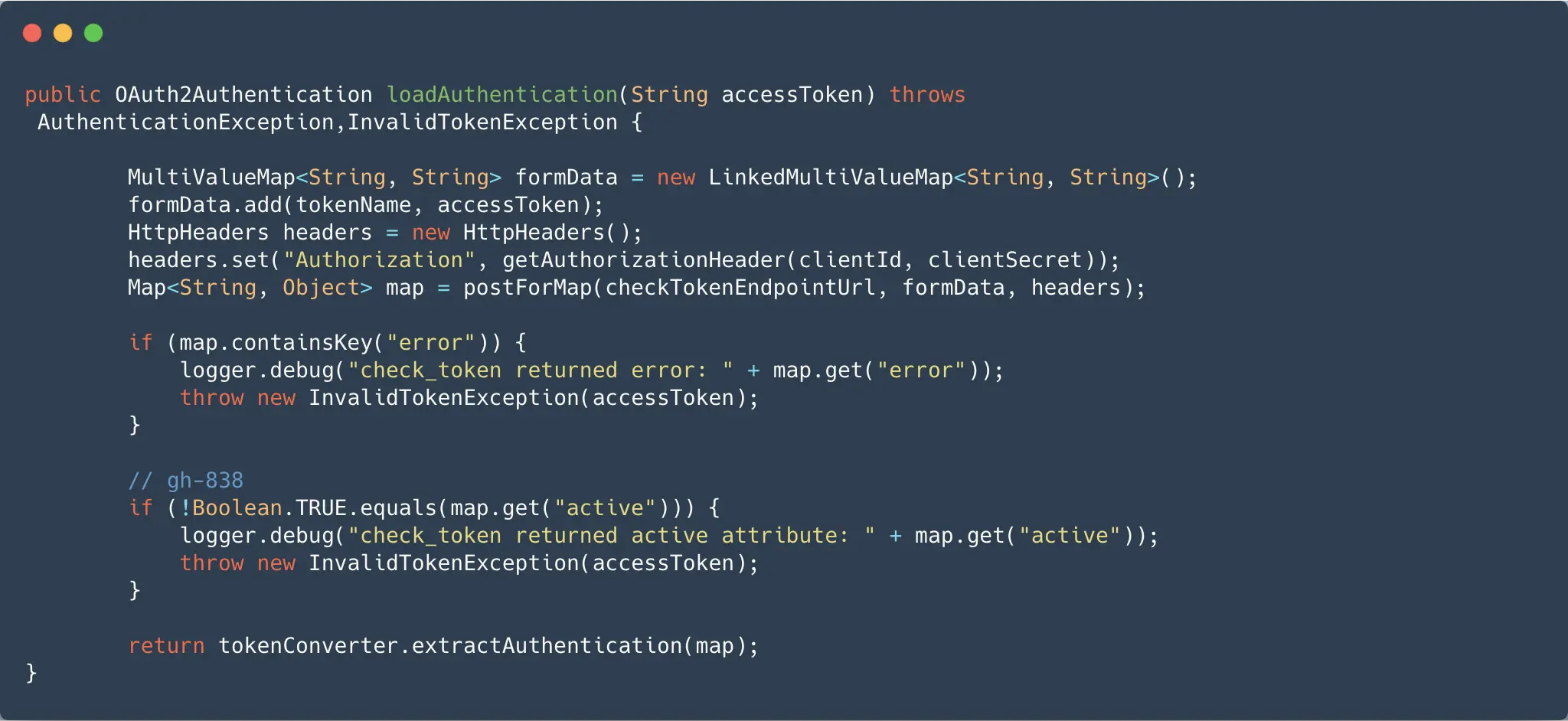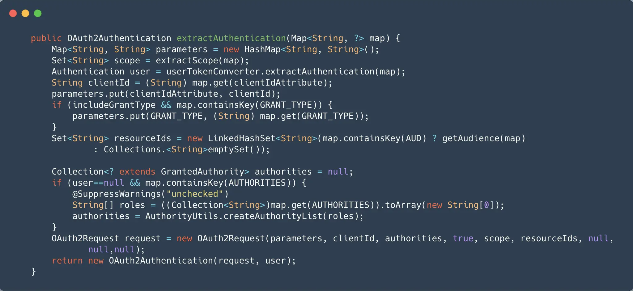 - 继续看 返回给 RemoteTokenServices.loadAuthentication 最后一句 tokenConverter.extractAuthentication 解析组装服务端返回的信息