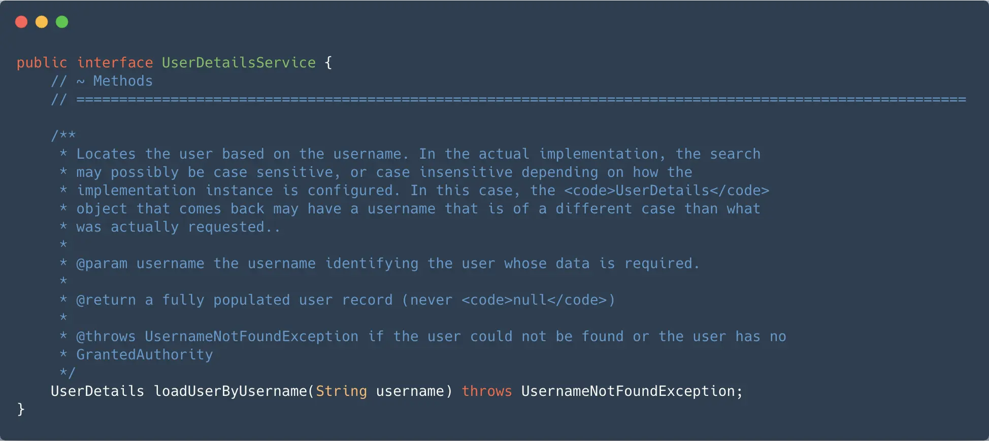 - 那根据的你问题,继续看 UerDetailsServiceImpl.loadUserByUsername 根据用户名去换取用户全部信息。